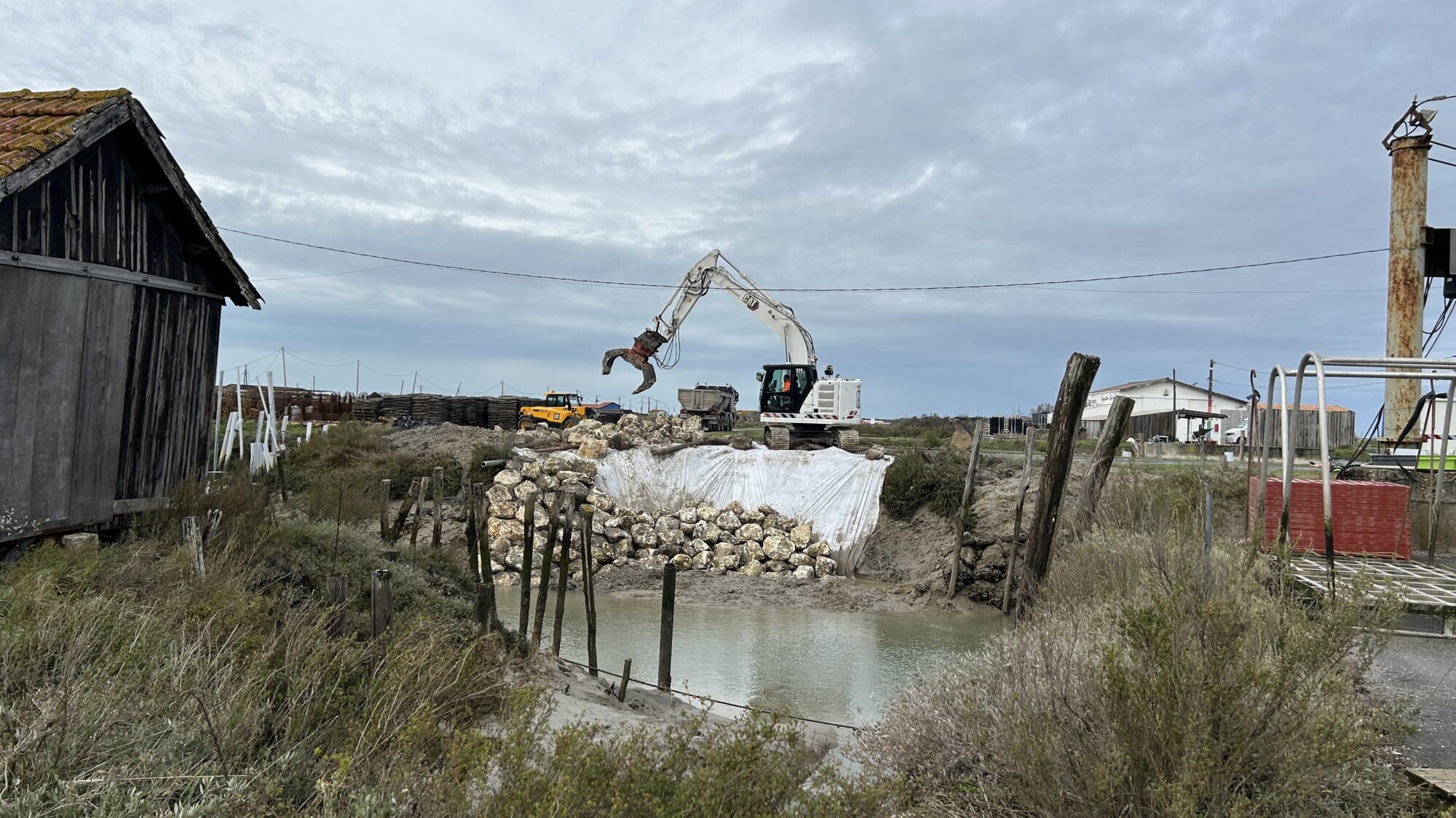 Ces interventions sur 3 points consistent en la mise en place d’un géotextile bidim et d’enrochement pour garantir le bon maintien des berges.