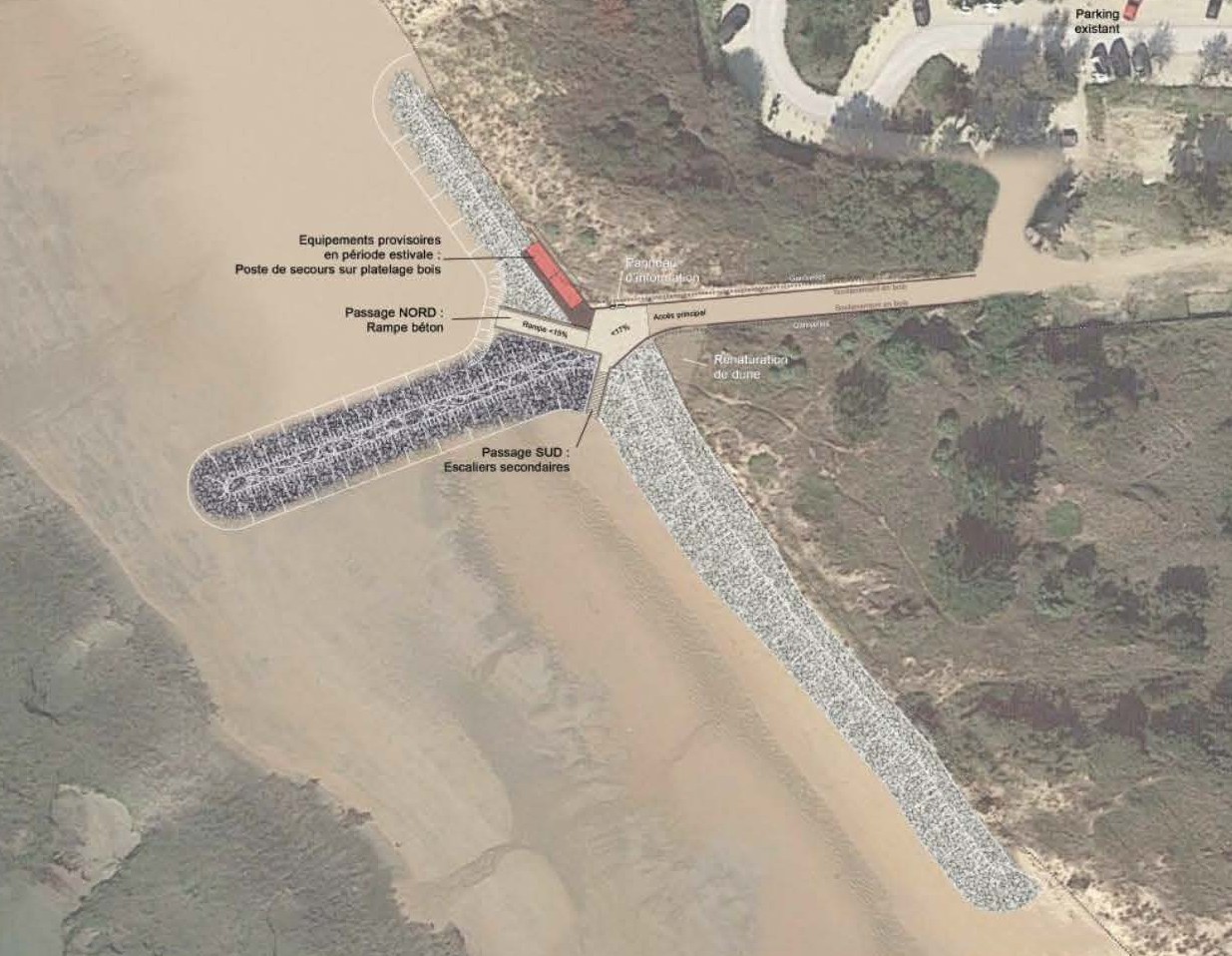 – Des accès à la Plage sécurisés (dont 1 PMR)